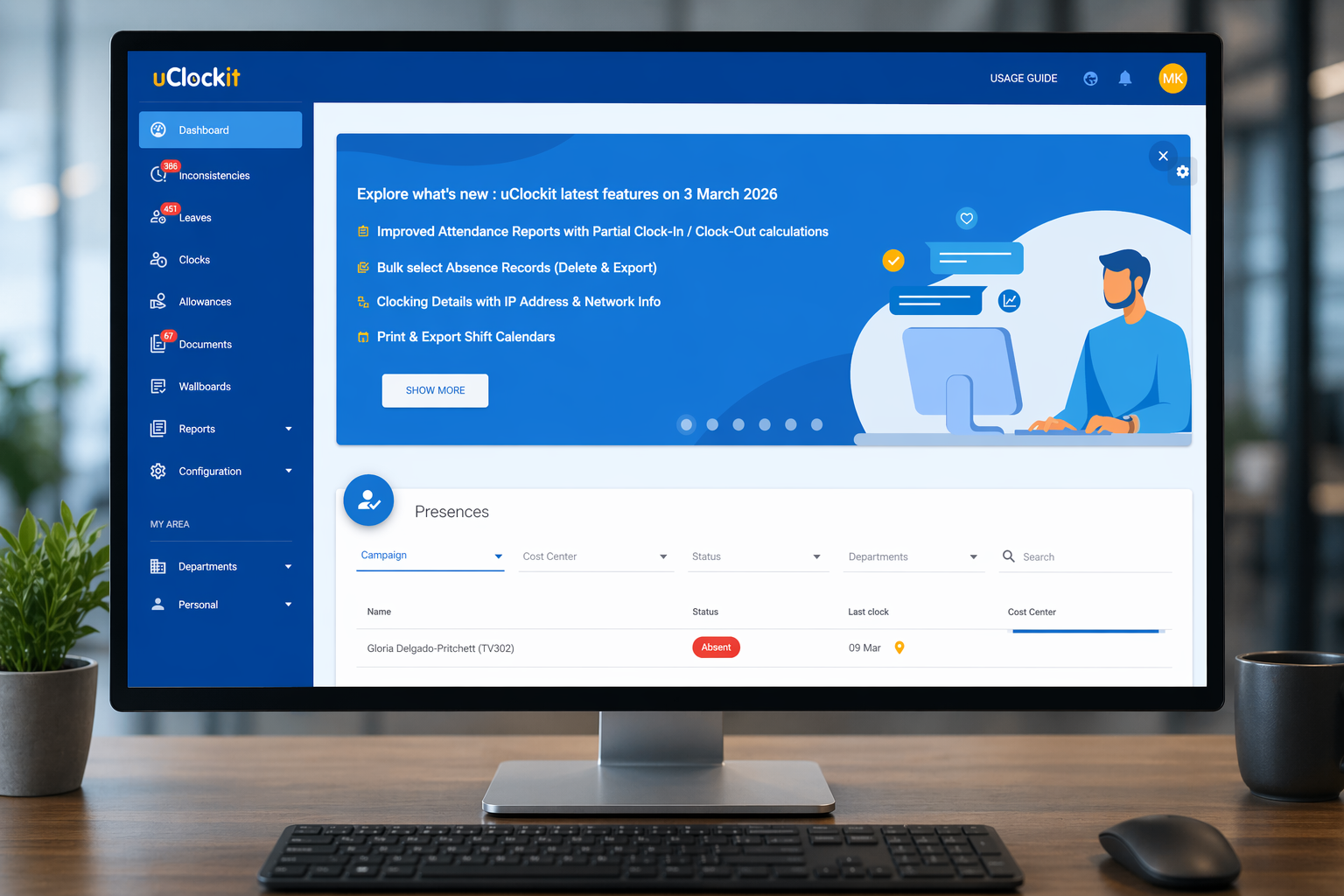 Como registar as presenças e as ausências na uClockit®?