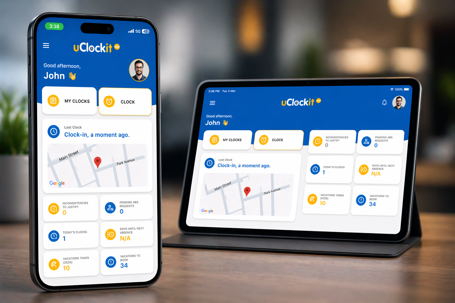A app móvel uClockit® foi criada para facilitar a gestão do tempo em qualquer lugar. Com ela, os colaboradores podem registar entradas e saídas, consultar horários, submeter pedidos de ausência e justificar inconsistências, tudo de forma simples e intuitiva. Ideal para quem precisa de mobilidade e agilidade no dia a dia.